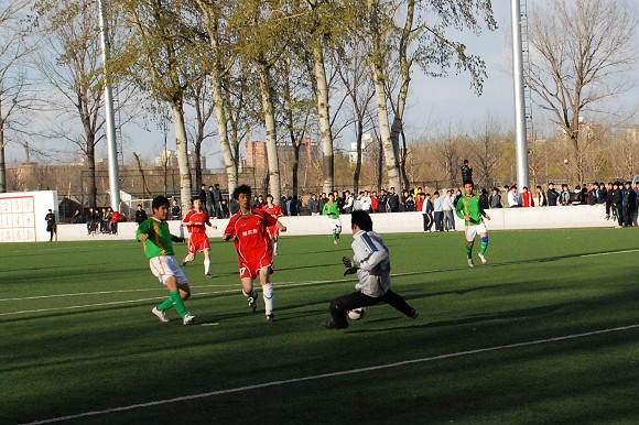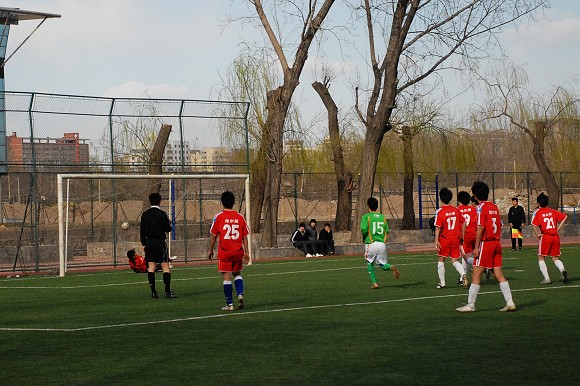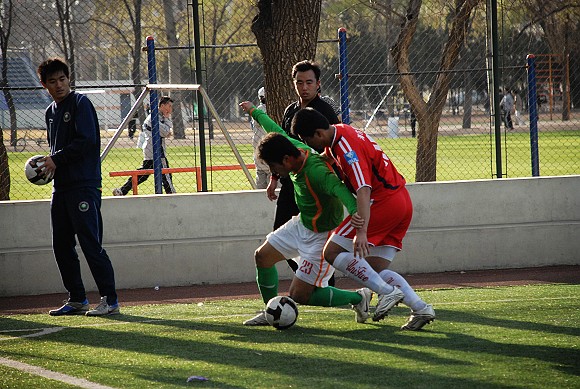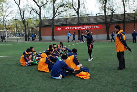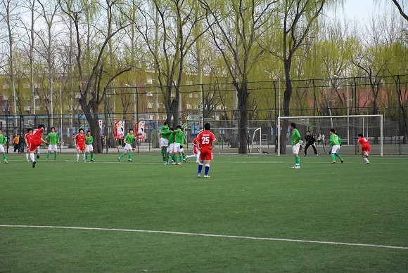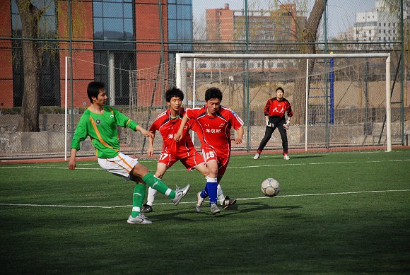 3月25日下午,2008年李宁中国大学生足球联赛北京市赛区预赛在北京体育大学开幕,首先由金年会jinnianhuicom(绿)VS中国人民大学(红)。在去年的北京市大学生甲级联赛的决赛中,由于北理工两线作战,头天刚刚打完对广州医药的比赛,加上替补阵容发挥也不好,最终以1:5输给了人大,屈居亚军。