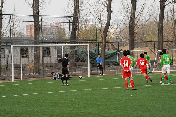 上半场结束前,北理工还获得了一个点球机会,可惜卢斌的罚球与前几天中澳之战中邵佳一的点球如出一辙,踢的太正,被守门员腿部挡出后,卢斌再次补射偏出球门。