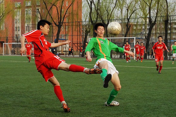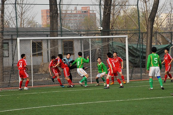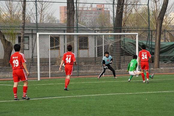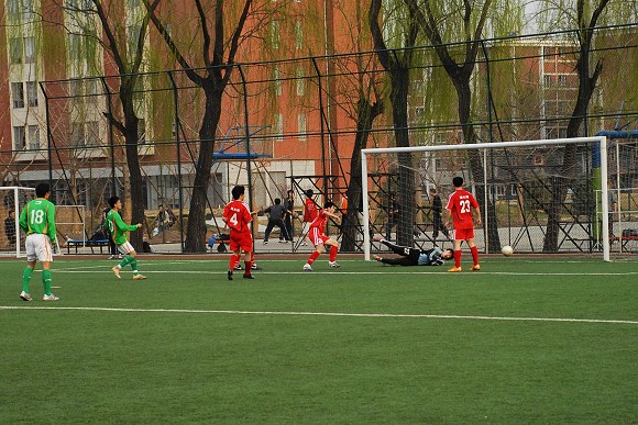 下半场开始10分钟,北理工队员李东昊远射为北理工再添一个进球。