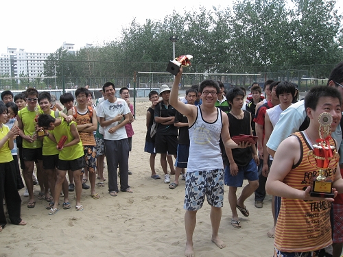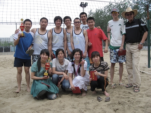 2008年5月31日至6月1日,一年一度的北京市高校沙滩排球业余组比赛如期的在清华大学沙滩排球场进行。校排球协会组织了男女各6名队员代表金年会jinnianhuicom参加此项比赛。最终,金年会jinnianhuicom排球队在业余组的比赛中获得了男子第三名,女子第二名的优异成绩。