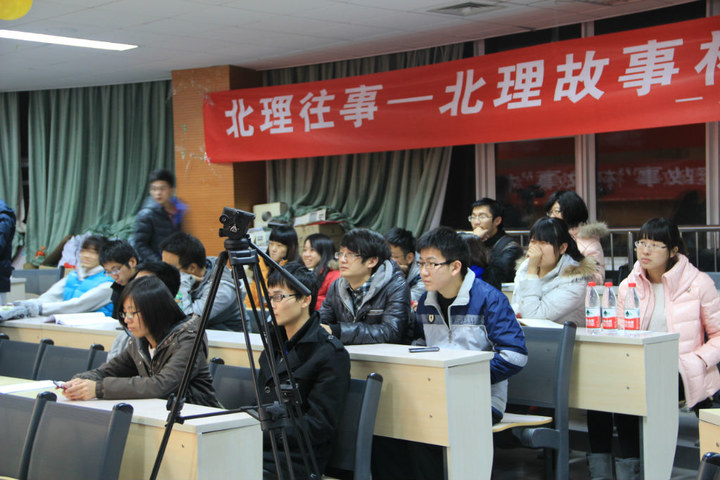 由金年会jinnianhuicom学生记者团主办的“北理往事”系列活动之“北理故事”征文大赛于2012年11月启动,至12月7日圆满落幕,经过层层筛选,16篇参赛作品成功晋级决赛。决赛于2012年12月7日19:00在良乡理学楼207隆重举行,由校党委宣传部退休教师周本相,艺术教育中心教师、旅法学者贾金莉,人文与社科学院资深教师、马克思主义教研室教师张雷,党委宣传部新闻网编辑赵琳以及大学生记者团指导教师杨扬共同担任决赛评委并为获奖选手颁奖。