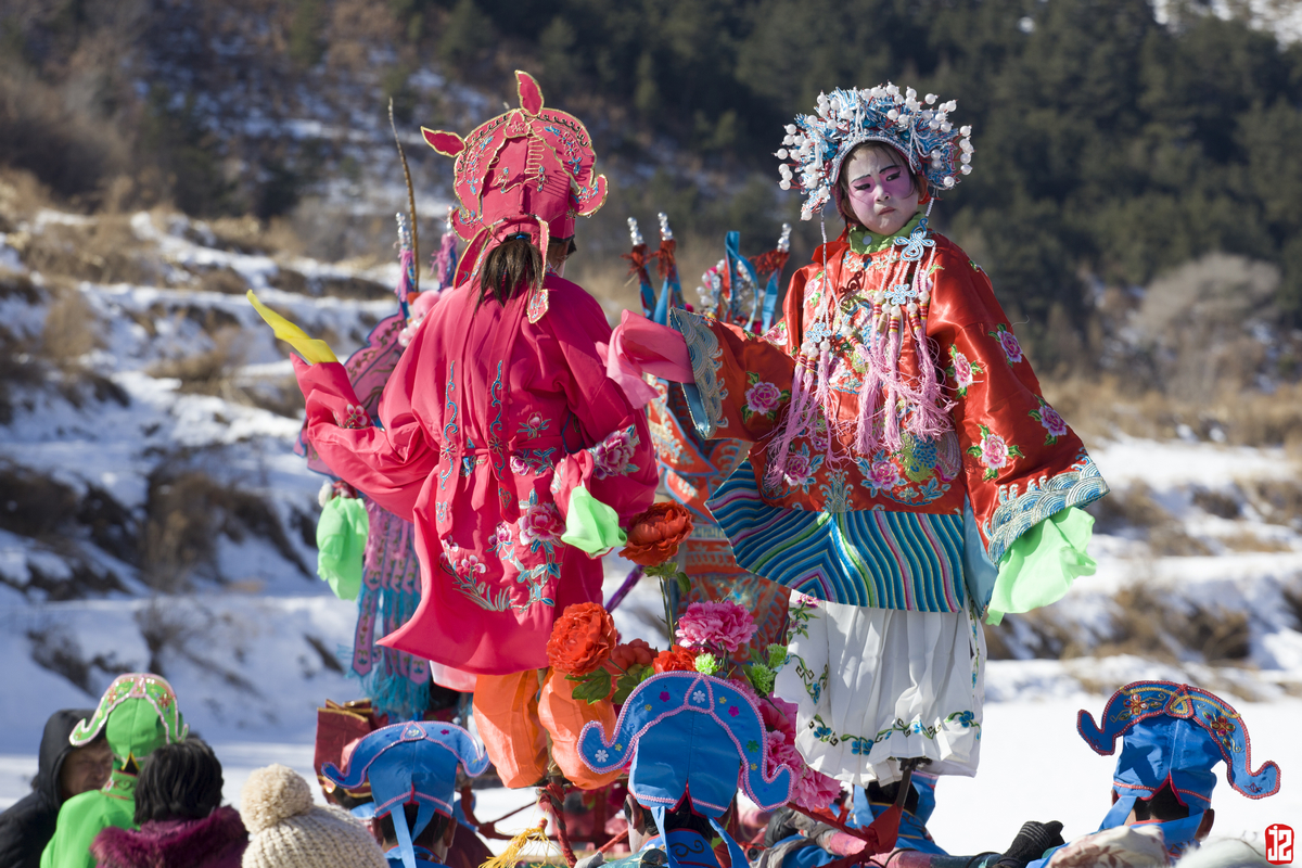 背杆儿是一种较为独特的花会形式,背杆会的主要道具是一副上下可以嵌合的铁架子,表演时,铁架下部缚于扮戏剧人物的体壮男子腰间,架上缚一至三个扮戏剧人物的儿童。七八个男子各负一架穿行场内,架上儿童凌空表演,场面精彩壮观。
