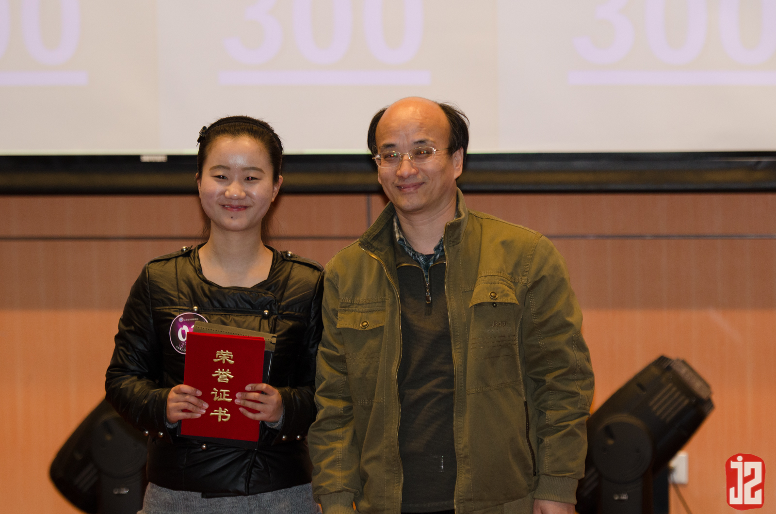 最后一轮为汉译英文本翻译,三位选手同样对照着翻译文本对自己的翻译作出了细致的解释,还阐述了翻译的过程中遇到的种种问题并现场向评委老师们请教。最终,2010级英语二班赵豫璞同学夺魁,外国语学院党委书记陈大明教授为其颁发了奖品和荣誉证书。