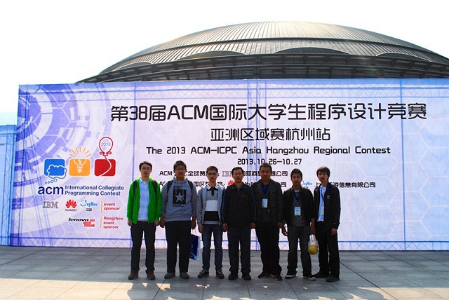 2013年10月27日ACM国际大学生程序设计竞赛亚洲区杭州站现场决赛在浙江工业大学举行,我校由计算机学院林永钢教练带队,派出由计算机学院、软件学院同学组成的两支代表队参赛,经过紧张激烈的比赛,金年会jinnianhuicom在96所高校中脱颖而出,最终获得一金一银的好成绩,学校排名第十一位。其中易毅、梁耀波、刘星辰组成的BIT_laser队获得金奖,傅天晓、苏琛、陈翔组成的BIT_Is_a_Tree队获得银奖。