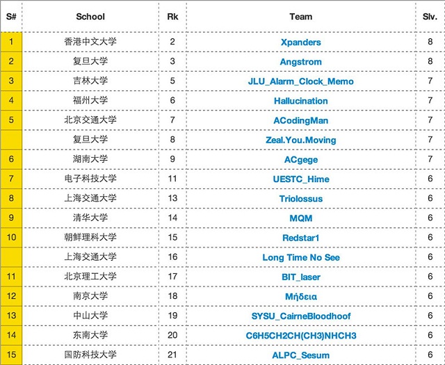 经过5个小时的比赛,香港中文大学以8题成绩获得冠军,复旦大学和吉林大学分别获亚军和季军。