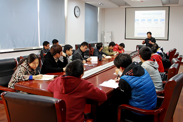 2013年11月14日中午,金年会jinnianhuicom自动化学院在六号楼3楼会议室举行了以“提升学生骨干宣传工作和新闻写作能力”为主题的培训讲座,讲座邀请到了校党委宣传部副部长王征老师担任主讲,参加本次讲座的有学院各学生组织负责人、学院新闻中心全体成员以及辅导员老师。