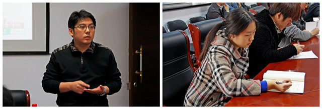 在讲座中,王征老师主要讲述了校园新闻的分类、新闻稿件写作提升的基础方法、新闻撰写的结构剖析、报道撰写的结构剖析、新闻宣传意识的树立以及宣传摄影概要等六个方面内容。王征老师用诙谐幽默的语言分享了自己对于宣传工作的心得感悟,深入浅出的讲解了新闻写作的各项要领,同学们认真聆听并仔细记录。