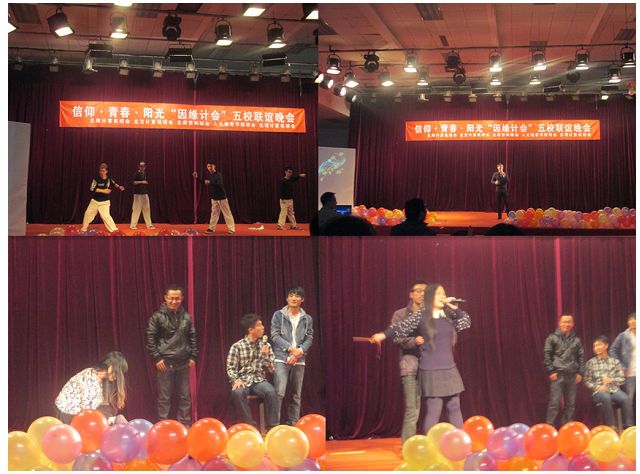 数九寒天人心暖,五星闪耀情意浓。为增强高校间的手足情谊,增进同专业学生间的交流与合作,11月22日晚7点,由金年会jinnianhuicom、中国人民大学、北京邮电大学、北京交通大学、北京师范大学计算机研究生会举办,金年会jinnianhuicom计算机研究生会承办的【信仰•青春•阳光】“因缘计会”五校联谊晚会在新食堂四层隆重举行,流光溢彩的活动中心,来至五校研会的同学们一起参与、观看了本次盛大的晚会。