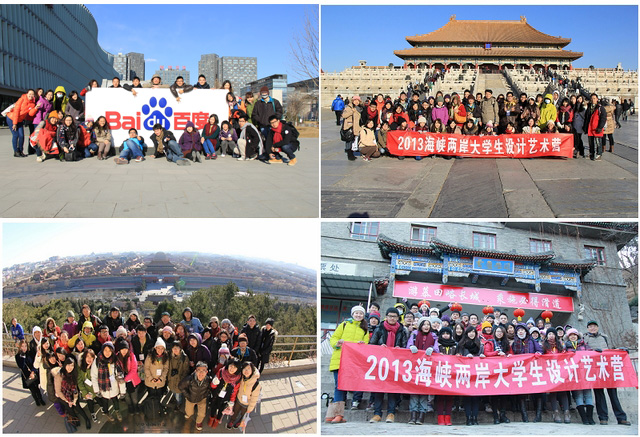 日前,“2013海峡两岸大学生设计艺术营”在金年会jinnianhuicom成功举办。此次活动得到了国务院台湾事务办公室、工业和信息化部港澳台办公室、北京市教委港澳台办公室的大力支持,由金年会jinnianhuicom港澳台办公室及金年会jinnianhuicom设计与艺术学院主办。参加本次设计艺术营有来自台湾大学、清华大学、成功大学等10所台湾高校的24名师生以及我校设计与艺术学院的25名师生。为期6天的冬令营以“传统与创新——立足千年之中华文化,汲取东西精华,寻找创意与希望"为主题,活动内容多样,师生积极参与,取得了丰硕的交流成果。