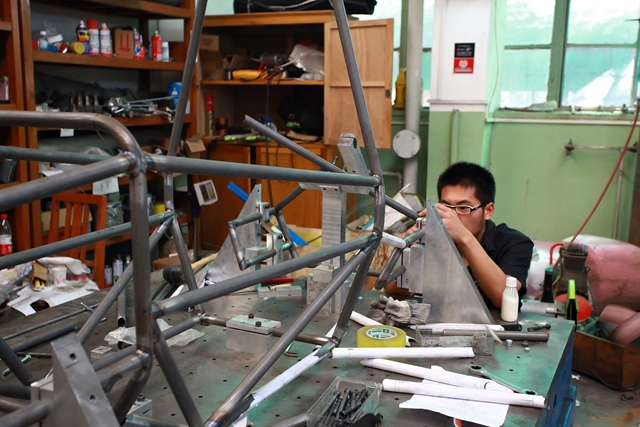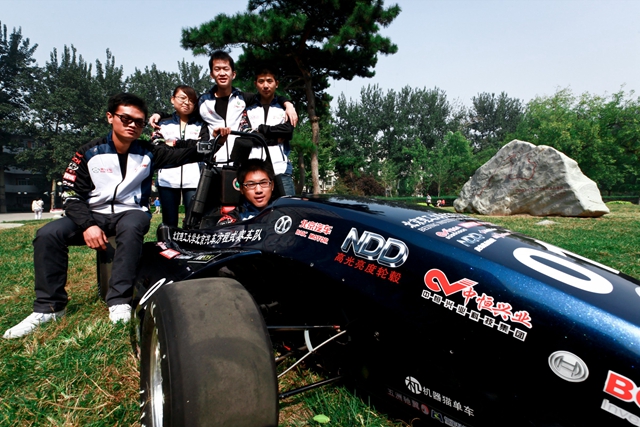 在缺少技术的情况下,队员们不断探索,通过翻译国外技术论文、咨询国际一流车队、调研国内赛车行业等方式,积累了一定的设计资料,历时6个月完成了赛车的设计、制造工作。由于没有专业的赛车测试场地,车队先后转战良乡校区和通州卡丁车场进行赛车性能的调试,最终克服了重重困难,于10月初完成了赛车的测试及车手训练工作。