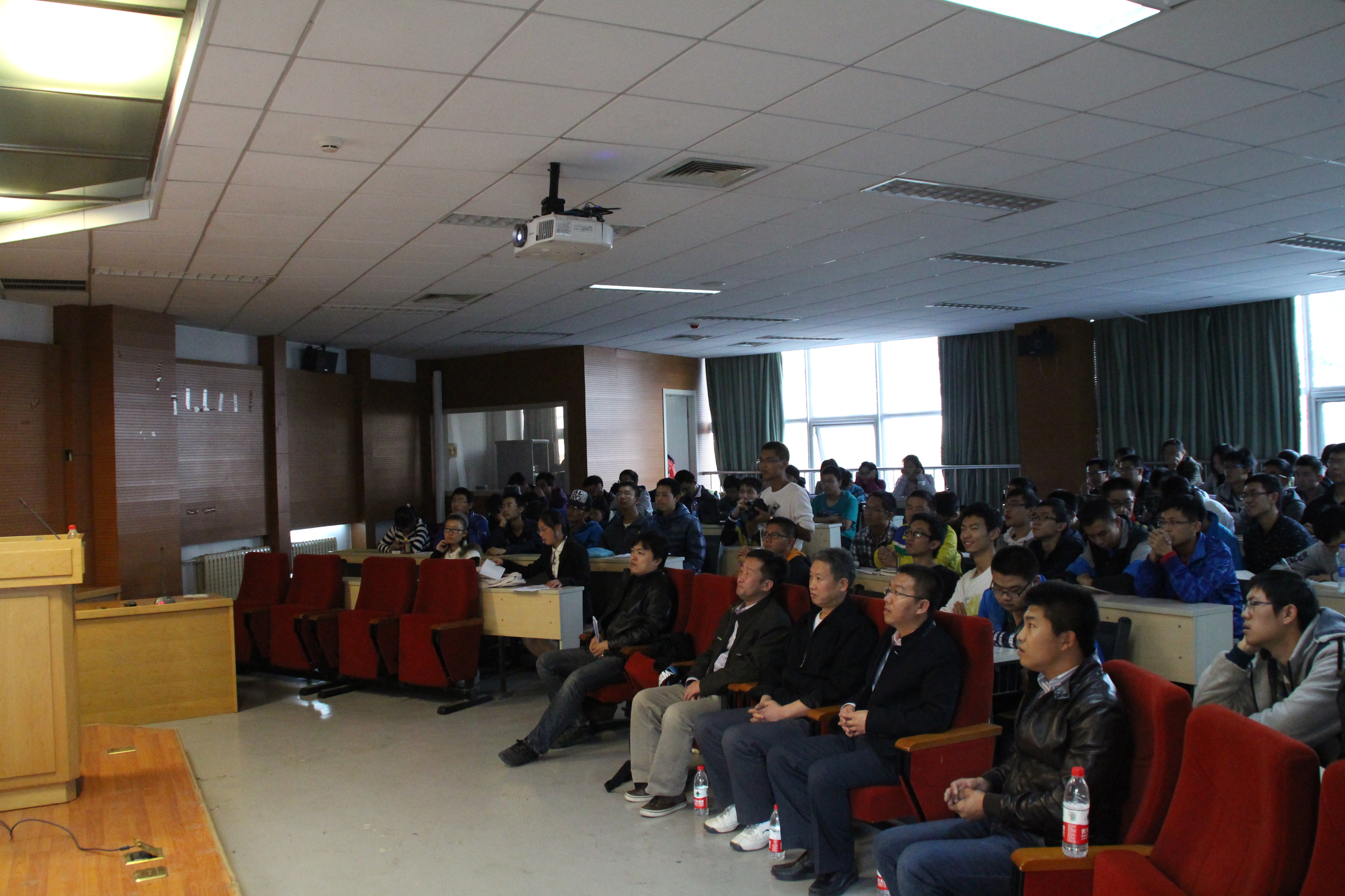 2014年10月27日下午3:30,由物理学院与中科院物理所联合举办的第七期学术报告——暨2012级“严济慈物理英才班”表彰大会在理学楼C座106报告厅成功举办。中科院物理所研究生部主任张宏伟老师,物理所研究员曹俊鹏老师,金年会jinnianhuicom研究生工作部副部长马晓宁老师,物理学院党委副书记、副院长杨艳波老师,物理学院院长助理、12级严济慈班班主任史庆藩老师以及物理学院2012级与2013级全体本科生出席了本次大会。