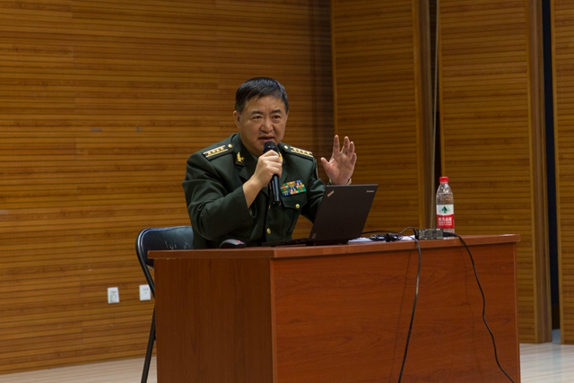 在答疑环节,同学们踊跃发言,针对工程装备的发展提出了自己的看法和见解,杨建昊对同学们的问题进行了耐心细致的解答。他号召同学们努力学习专业知识,立足国防,投身国防,建设国防。讲座在同学们热烈的掌声中结束。通过这次讲座,同学们对工程装备有了系统的了解,进一步促进他们认识到科学技术对于国防建设的重要性。