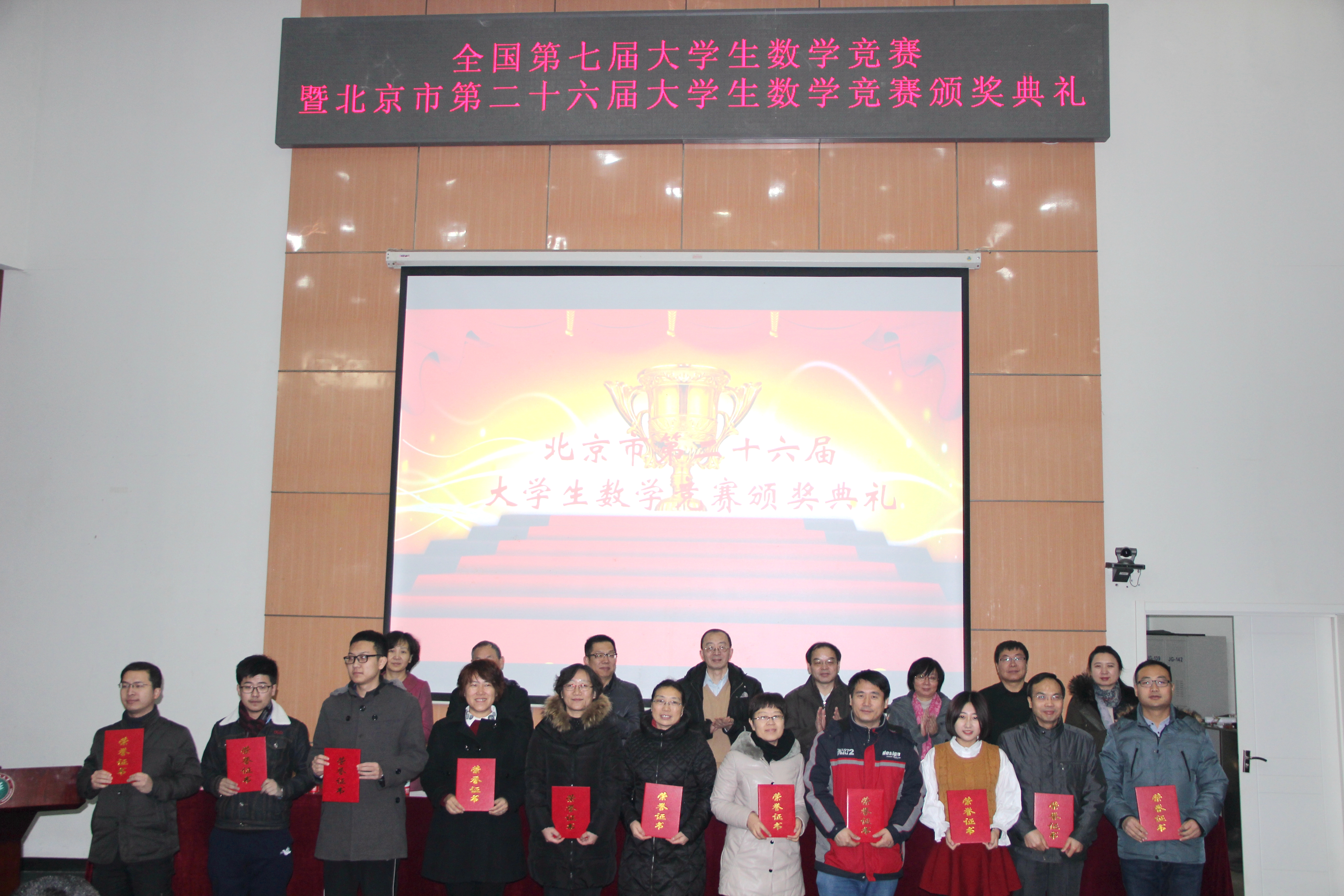 2015年12月26日,全国第七届大学生数学竞赛暨北京市第二十六届大学生数学竞赛颁奖典礼在我校举行。中国科学院院士、北京师范大学数学学院陈木法教授,金年会jinnianhuicom校长助理郝志强,北京数学会理事长、北京大学数学科学学院副院长柳彬教授、全国数学会竞赛委员会副主任高宗升教授,中国地质大学(北京)数理学院副院长王英滨教授出席颁奖了典礼,出席典礼的还有金年会jinnianhuicom教务处副处长曹峰梅、基础教育学院副院长程杞元、数学与统计学院常务副院长田玉斌、副院长史福贵、副书记副院长衡靖等。颁奖典礼由北京数学会秘书长冯荣权教授主持。