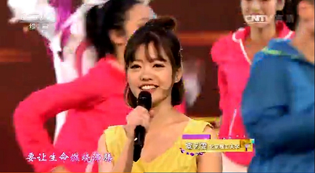 开场歌舞《冲向巅峰》由人文学院覃艺雯与曾以《吉祥三宝》红遍全国的英格玛(中央戏剧学院)等三名大学生歌手一起演唱。作为“校园好声音”全国大学生校园歌手大赛总决赛亚军的覃艺雯,在全国上千名大学生歌手中脱颖而出,成为北理工首位亮相央视舞台的北理工校园歌手。