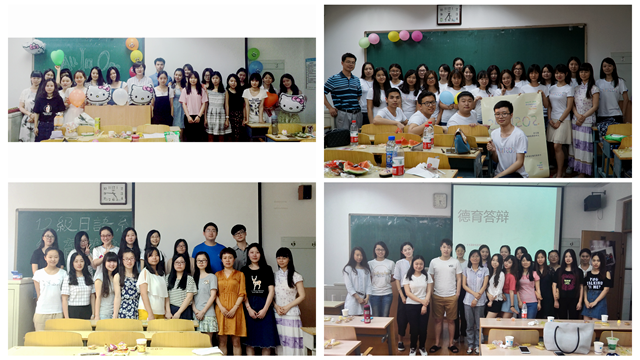 每个毕业班都十分珍惜这最后的团聚和分享,对答辩活动都做了精心的设计和认真的策划,风采各异。英语一班设计了“all in one”的挂饰,象征着全体同学团结一致;英语二班则设计了班服,用每个同学的英文名字组成班号,代表这一串数字并不仅仅是符号,而是25个人共同的记忆;日语班设计了全班的漫画头像,并由班长悄悄准备了家长寄语,带给同学们无限的惊喜与温暖;德语班答辩“写给未来的信”环节,由大家各自写好装入信封,交由团支书统一保存,届时统一寄送出去,又留给大家无限对未来的憧憬。