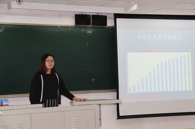 管老师首先对就业形势进行了解析。近年来,毕业生人数在不断增长。预计2017年应届生、海外归国人员和未就业往届毕业生共有1000万求职的大学生。然而单位招聘岗位对比往年相对减少。国企、外企、民企遭遇“寒潮”,北京市缩减户口指标都加剧了这一情况。单位招聘呈现时间早、很集中、门槛高的特点。北、上、广、深等各大城市就业难度继续加大,二、三线城市收入差别不大、生活成本低、发展平台好。海外留学生归国潮也加剧了就业形势严峻的局面。总得看来,对于应届毕业生来说,就业形势并不乐观。接着,管老师详细的介绍了学校的一些促就业政策,并指出毕业生可以通过学校和学院举行的小型宣讲会、大型双选会、就业信息网等渠道了解求职信息;鼓励大学生们要找准定位,调整求职期望值,“广泛撒网,重点捕鱼”。管老师向大家介绍了求职的一些经验、方法,如求职的流程、需准备的材料、求职的主要渠道,还根据往届同学真实的案例详细讲解了求职面试应注意的技巧。除此之外,管老师还介绍了毕业生派遣知识和就业中常遇到的问题。如签约必备的毕业生就业推荐表、就业协议书,离校必备的报道证、户口卡等。