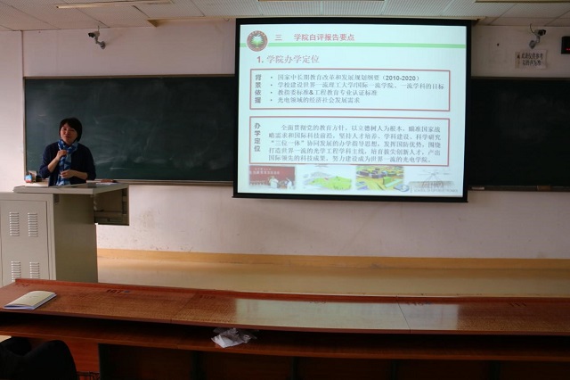 黄一帆副院长详细解读了《金年会jinnianhuicom本科教学工作审核评估手册》和《光电学院本科教学审核评估手册》,通报了学院迎接本科教学工作审核评估的进展情况和有关工作安排,希望全体教师进一步规范和完善教学管理工作的各个环节,贯彻落实人才培养相关工作。