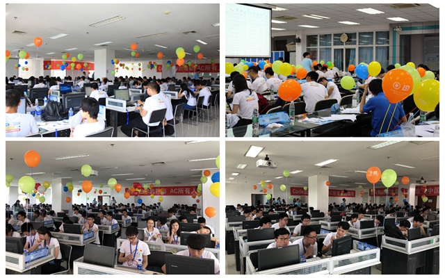 比赛在中关村和良乡两个赛区同步进行。上午,ACM/ICPC训练基地教练、大赛评审小组成员林永钢老师宣布比赛开始,大赛正式拉开帷幕。程序设计大赛是一项旨在展示大学生创新能力、团队精神和在压力下编写程序、分析和解决问题能力的竞赛,主要面向本科生和低年级研究生,自2004年至今已成功举办十三届,是我校参与人数最多的科技类竞赛之一,历届比赛参加总人数达6000余人,已成为我校程序设计爱好者的节日。今年,中关村校区和良乡校区的两个赛场共有来自14所高校的239个队伍650名选手参赛。此次比赛共设置10道题目,采用ACM评分规则,程序正误由Online Judge系统自动判评。长达5个小时的激烈角逐,不仅是脑力的比拼,而且是耐力的较量。参赛选手争分夺秒,随着榜单的不断刷新,机房上空渐渐升起彩色的云朵。