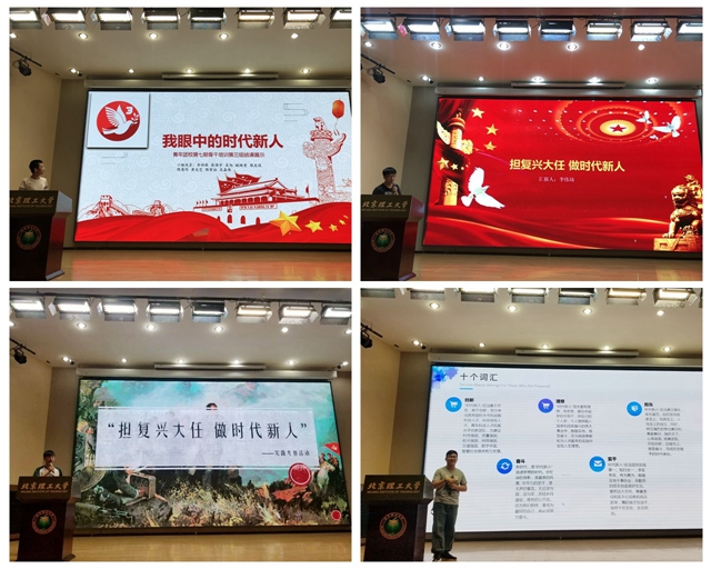典礼在《中国共青团团歌》中开始。来自材料学院青年团校第七期骨干培训班的9个团队就“担复兴大任,做时代新人”主题进行了社会实践汇报。各小组分别赴金年会jinnianhuicom校史馆、中国人民革命军事博物馆、中国人民抗日战争纪念馆等地进行实践参观,并总结了实践感悟。此外,各小组分别讨论总结了“时代新人”的一个标准、一个故事、一段“新人语录”和十大高频词汇等相关内容,对“时代新人”做出了自己的理解。