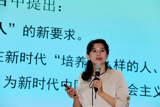 张舰月进行“担复兴大任,做时代新人”主题讲座。她肯定了本次团校培训中各小组成员积极参与、重视实践、紧紧围绕“担复兴大任 做时代新人”的主题开展活动,同时也指出了各团队在学习实践中的一些不足与需要改进的地方,并给出了未来开展活动的建议与指导。在主题讲座部分,她带领学员们学习“十九大报告”中习近平总书记对青年人的期望,同时结合习总书记在2014年5月4日、2018年5月2日两次在北京大学的讲话精神,引导与教育青年思考在新时代,新青年的新使命。她结合近期国家、学校、学院的活动,深入浅出,鼓励团员骨干,组织活动要勤思考、重学习、挖内涵,拓层面和看收获。此外,她带领团员青年们剖析与学习了“社会主义核心价值观”的内容,以三个问题为引入,引导学生们树立正确的“三观”,倡导学生们身体力行、勇做榜样,坚定不移的弘扬与践行社会主义核心价值观。