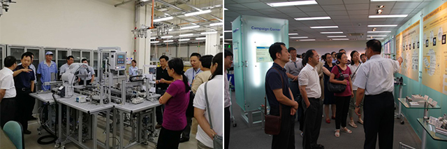 双方举行了“高端流体动力技术研究生实践创新基地”的挂牌仪式,并合影留念。北理工自动化学院一行参观了SMC(中国)有限公司技术中心的研发实验室及全球领先的气动和电子产品的展览室。