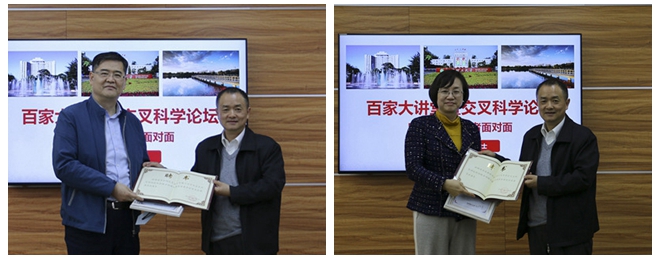 梅宏向两位院士颁发了“百家大讲堂”报告嘉宾纪念证书和前沿交叉院战略咨询顾问委员会顾问专家聘书,并代表学校欢迎两位院士的到来,感谢两位院士在百忙之中为前沿交叉院的未来发展出谋划策。他介绍了金年会jinnianhuicom作为传统工科院校在兵器与国防领域的优势,随着大学体系的调整和国家“双一流”建设的实施,当前学校全面深化改革,齐心聚力积极向世界一流大学奋进。他讲到以前沿交叉科学研究为代表的新兴学科的发展将成为未来一流大学建设的重要力量,前沿交叉院按照“学科方向孵化器”“优秀人才蓄水池”的基本定位,围绕物质科学、生命科学、信息科学三大领域,超前布局交叉研究方向,汇聚培育具有国际竞争力的高端人才队伍,开展交叉性、前沿性、基础性、战略性研究,培育新的学科方向增长点,催生原始创新性成果,助推学校一流大学建设。他强调前沿交叉院建设要积极分析和借鉴兄弟高校的经验和教训,并结合学校的实际情况稳步推进,同时希望两位院士能在前沿交叉院的发展规划、研究方向论证、优秀人才引进等方面给予指导与帮助。