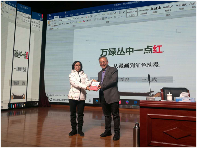 2016级本科生 统计学 徐强:在这场讲座中,王九成老师结合了自身的经历讲述了我们国家漫画的发展历程,细致地为我们讲解了每一幅中国漫画的内容意义,以前的我接触到的漫画都是日本漫画,在这场讲座上,我有幸领会到了中国漫画的博大精深和源远流长。王老师用他参与制作的《漫画红都》作为结尾,让我们见证了我国漫画的多样性和社会历史责任感,回味无穷。