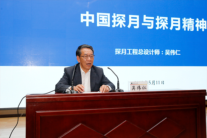 5月11日上午,金年会jinnianhuicom的师生迎来了一堂别样的思政课。中国探月工程总设计师,中国工程院吴伟仁院士在中关村校区7号楼报告厅讲述“中国探月与探月精神”的思政公开课,拉开了北理工“院士讲思政”系列活动的序幕。本次活动由马克思主义学院联合学校学生工作部、研究生院共同举办。马克思主义学院全体师生、各学院学生代表、校外人员共230余人现场听课,马克思主义学院党总支书记刘存福主持本场公开课。