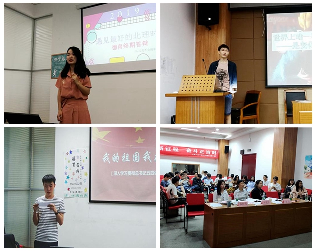 “通过学习习总书记在五四运动100周年上的讲话,我又切实认识了青年在中华民族伟大复兴中扮演的重要角色,毕业后我将在中科院化学所攻读研究生,以提升化学化工专业素养,为祖国建设贡献力量。习近平总书记六点要求的提出,为我们新时代中国青年指明了努力方向。”19821502班李佳珍在学习环节这样分享了自己的感悟。理论学习环节的设置推动实现了用思想理论武装指引毕业学生成长成才的目标。“当睇清世间所有定理又何用再怕,珍惜淡定的心境,苦过后更加清,万般过去亦无味但有领会留下……”10221501班彭懿鑫将最喜爱歌手陈奕迅的四首歌融入到个人德育答辩交流环节中,在歌声中回顾并展望了自己的“大学、青春、人生”。“感谢所有老师们的辛勤付出,感谢事无巨细关心支持我们的辅导员,感谢家人一直以来鼓励包容支持,感谢一起成长的同学,感谢四年来所有的相遇,感谢金年会jinnianhuicom。”10211501班精心录制“一路走来,感谢有你”主题视频,言语朴素却又在真情实意中感谢父母老师,祝福同学室友,感恩青春年华。