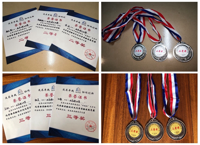 本次竞赛,我校获得一等奖1项,二等奖3项,三等奖1项。其中在“化学实验技能竞赛”中,2016级段如梦同学获得物化化学组一等奖,雷鹏、邓焘分别获得有机化学组和无机及分析化学组二等奖。在“新实验设计赛”中,蒋立贤、李毅恒、李杰获得有机化学组团队二等奖,江南、张昊、吴逊获得无机及分析化学组团队三等奖。