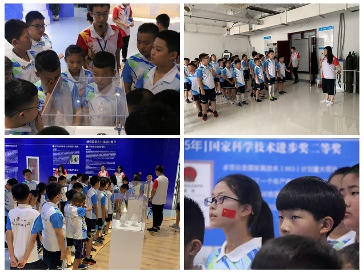实践团成员带领营员参观了北理工(天津)新材料研究院的材料展厅、中试实验室等,给营员们上了一堂生动的材料学课程,并向营员们讲述了北理工的光荣历史和文化。为了厚植爱国情怀,表达对祖国母亲70周年的华诞的庆祝和喜悦,社会实践团成员和青少年营员录制视频共同祝祖国母亲生日快乐,祝伟大祖国繁荣昌盛!