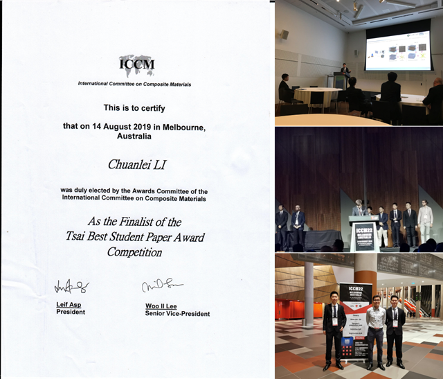 8月11日至16日,第22届国际复合材料大会(ICCM-22)在澳大利亚墨尔本会展中心举行,我校先进结构技术研究院2017级力学专业博士生李传檑提交的学术论文《Defect characterization and mechanical properties of multi-layer lattice structures》入围“Tsai最佳学生论文”奖。国际复合材料大会始于1975年,每两年召开一次,由国际复合材料委员会主办(ICCM),是全球复合材料领域历史最长、规模最大、最具权威的学术研讨会。