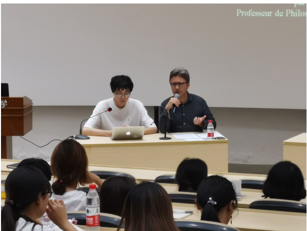 在提问环节,针对同学提出的浪漫主义先驱诺瓦利斯在人性剖析与社会未来规划之间的联系问题,佘仸尔先生解释道,浪漫主义是一种乌托邦式的集体性艺术流派,“合体诗歌”与“合体哲学”的发展,无疑成为当时的时代精神,促进社会的变革。