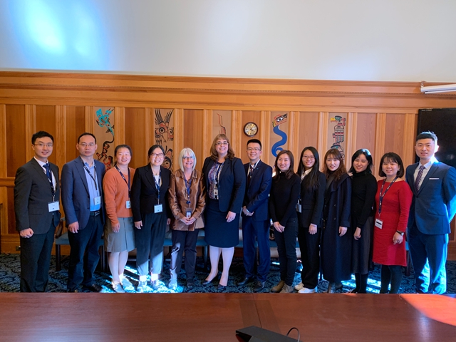 步入不列颠哥伦比亚省议会大厦,帅气专业的解说员用其夸张而有趣的腔调为我们全面细致地介绍了议会大厦的历史及加拿大的政治体制。之后议会议员和人力资源厅常务副厅长友好的接见了访学团。加拿大是多党执政国家,每届4年,为更好地获得民众支持,议会政府会不遗余力为民众创造获得感,比如为各行各业制定完善的培训体系,让每个人都能获得专业培训、就业的机会等。