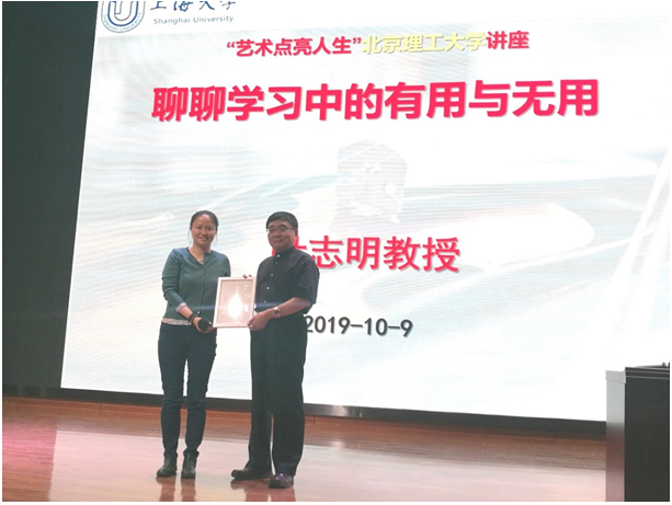 10月9日晚,由共青团金年会jinnianhuicom委员会和人文与社会科学学院共同主办的“百家大讲堂”暨领航专家系列讲座“艺术点亮人生——聊聊学习中的有用与无用”在良乡校区图书馆音乐厅开讲。此次讲座由上海大学原党委常委、副校长,上海大学音乐学院院长,二级教授、工程力学与结构工程博士生导师叶志明主讲。讲座由人文学院教师许晶主持。