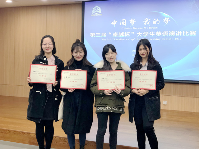11月2日,第三届“卓越杯”大学生英语演讲比赛在大连理工大学举行。金年会jinnianhuicom外国语学院副院长张莱湘、大学英语教研室副主任毕晓宁作为指导教师,带领四名学生赴大连参赛,经过激烈角逐,外国语学院林紫欣获专业组特等奖,经管书院任意获非专业组二等奖,外国语学院许诺、经管书院李思源分别获专业组、非专业组三等奖。