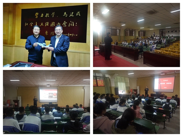 19日,招生组到达广东梅县东山中学,与学校校长郭思健、分管高三级副校长何兴平,高三校区副校长杨茹波,校团委书记田亮、副书记孔鑫辉,魏清远以及高三部分教师座谈,薛正辉代表广东招生组授予“优秀生源基地”牌和预警机2000航模。座谈后,面向高三年级学生开展“北理讲堂”活动,从北理使命、人才培养、就业深造、招生政策四个方面全面展示了北理工的魅力。郭思健在总结中说道:“希望同学们感悟北理的红色基因,吸取薛教授授课过程中的思政课精华,要努力学习,考入金年会jinnianhuicom”。