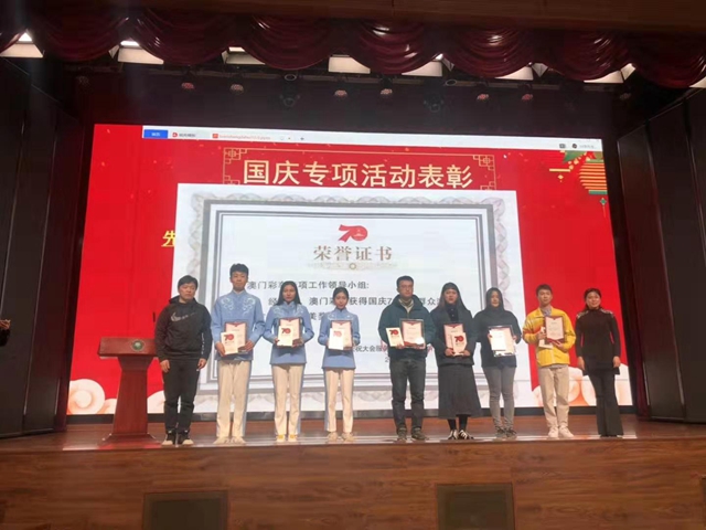 在国庆70周年庆祝活动中,学院、书院学子积极参与到了群众游行、广场合唱、联欢活动、科技保障、志愿服务等工作中,圆满完成任务。其中7位学子表现优秀,荣获校级“优秀个人”奖,张舰月和马晓宁为同学们颁发了荣誉证书和赠书。
