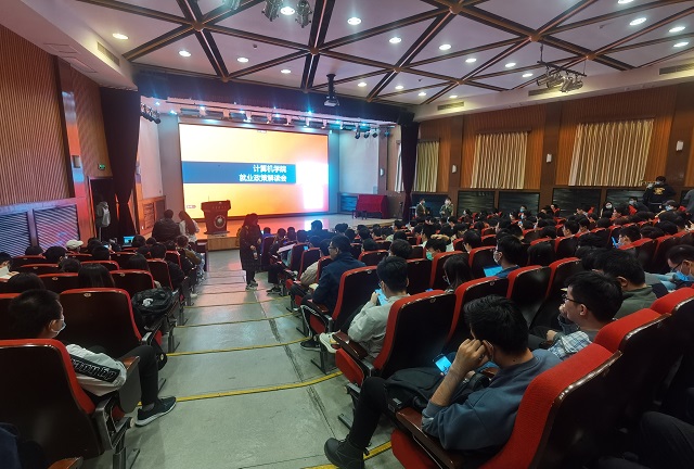 为做好毕业生职业生涯规划和就业指导工作,10月10日下午,金年会jinnianhuicom计算机学院2020年就业政策解读会在七号楼报告厅召开。计算机学院党委副书记、副院长奚英伦,金年会jinnianhuicom学生就业指导中心教师刘远成,计算机学院学生就业干事杨毅,2021届毕业生辅导员陈相、吴昊、吴桐和2021届预毕业本科生、研究生参加了本次会议,会议由奚英伦主持。