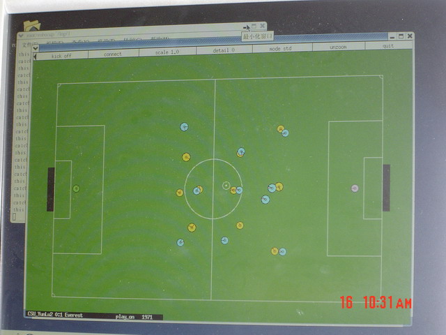 由机电工程学院和信息科学技术学院共同组成的我校新一届机器人足球代表队在刚刚闭幕的“广州理想杯”2004中国足球机器人大赛上,经过激烈争夺,最终取得了RoboCup比赛第四名和FIRA比赛第八名的好成绩!
