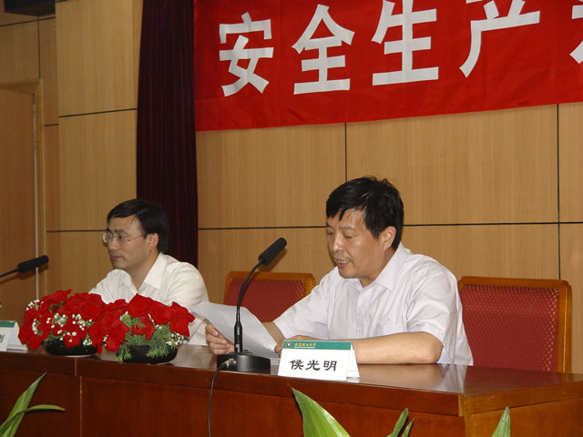 随后,侯光明副校长做了总结发言。他首先感谢陈处长为母校的安全生产做了一次精彩的讲座,希望今后经常光临指导母校安全生产工作,同时,他指出我校在建设高水平研究型大学、培养高素质人才过程中,一定不要忽视对学生安全意识的培养教育;接着从校园火灾、爆炸品、危险化学品、交通安全等方面介绍了我校所面临的形势和学校已经开展的相关工作;侯校长还借此机会,对我校今年安全生产月活动做了总结,他指出,今年的安全生产月活动,在实验室设备处组织下,在各单位密切配合下,开展了丰富多彩的活动内容,如全校校领导带队的安全检查、出版校报专刊、举办校园安全生产咨询日活动、组织全校性安全生产知识抢答比赛以及安全知识讲座等形式多样的活动,达到了“营造安全氛围、传播安全文化、宣传安全知识”的目的,进一步巩固了我校安全生产稳定局面;最后侯校长指出学校近几年未发生重大安全生产事故,这是在座全体老师共同辛勤努力的结果,并希望大家在今后的校园安全生产工作中取得更大的成绩。