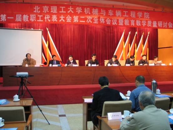 大会分为两个阶段进行。在预备会期间,会议代表分组学习讨论了会议相关文件并提出了许多建设性的建议和意见。在正式会议上,院长项昌乐做了题为《牢固确立教学工作的中心地位,强化质量意识,提高教学质量》的工作报告;副院长王文清做了题为《以教学质量为主线,全面提高学院本科教学工作水平》的报告;副院长、副书记郝洪涛做了题为《提高学习质量,改善学习氛围》的报告。