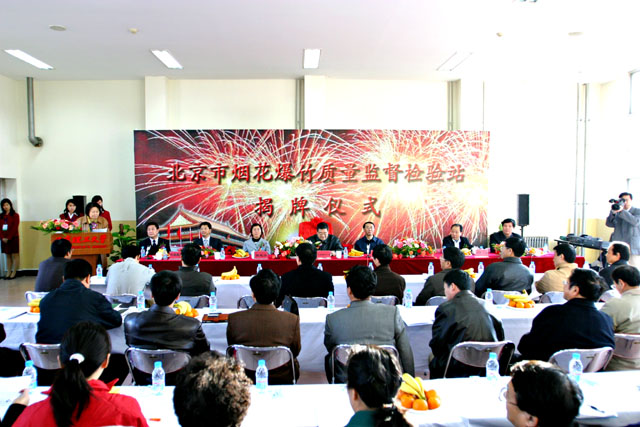 校党委书记焦文俊和市质监局负责人为北京市烟花爆竹质量监督检验站揭牌。