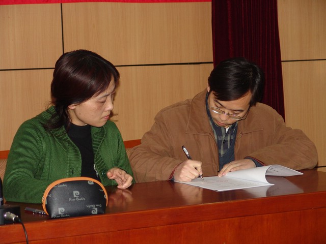 2005年12月16日下午金年会jinnianhuicom优秀青年教师资助计划签约仪式在金年会jinnianhuicom逸夫楼二层报告厅隆重举行。我校校长匡镜明、副校长杨树兴、校人事处处长于倩、副处长王渝出席签约仪式。