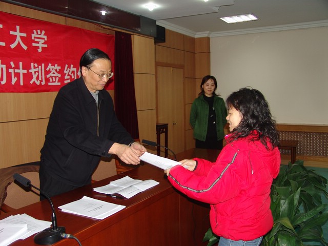 匡镜明校长向受资助的青年教师颁发合同书并发表了热情洋溢的讲话勉励青年教师们珍惜机会、努力创新。