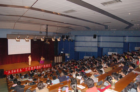 2004年5月艺教中心首次举办了艺术实践课汇报演出,受到同学们的欢迎和教务处的肯定。今年是第二次举办,同学们再次表现出了极大的参与热情。演出的所有节目均来自艺术教育中心开设的艺术选修课。老师们结合课堂教学训练培养大学生的艺术实践技能,并编排了一些节目进行让同学们演出。