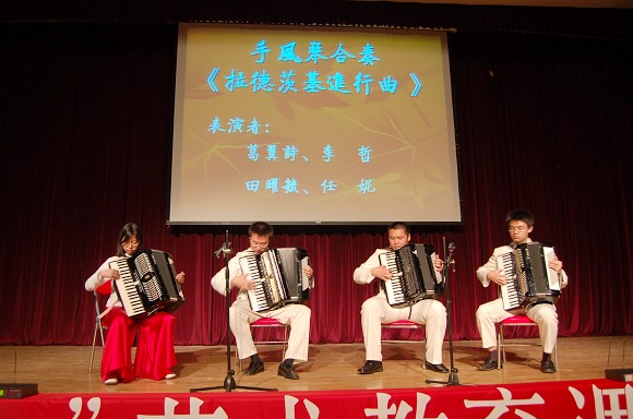 来自张清老师主讲的《手风琴入门》课堂的同学们,以精湛的技艺表演了多个手风琴合奏曲目,优美的旋律征服了满场观众。