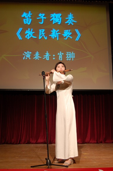 来自王颖老师主讲的《乐理基础实践与民歌演唱》课堂的同学们向观众奉献了独唱、笛子独奏等节目,精彩的演出博得了观众的掌声。
