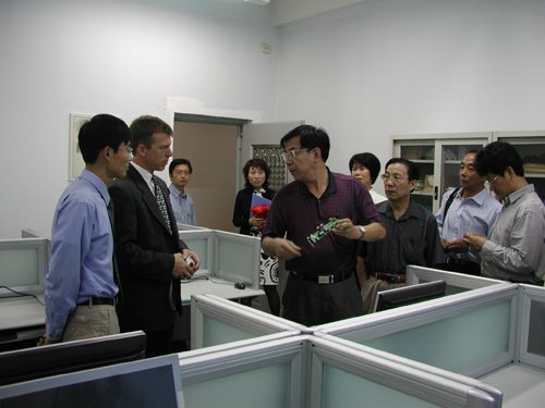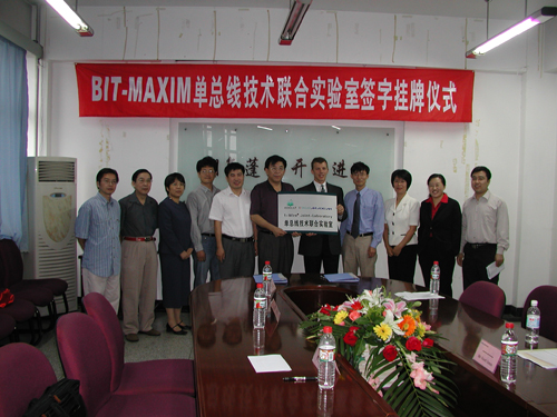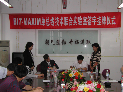 签字挂牌仪式由张玉平教授主持,王美玲副教授宣读了《金年会jinnianhuicom和DALLAS/MAXIM公司关于教育和研究计划的合作协议书》,DALLAS/MAXIM公司产品线总裁Scott Jones先生和我校实设处处长李振键教授发表了热情洋溢的讲话并对协议书进行了签字,信息科学技术学院院长仲顺安教授和DALLAS/MAXIM公司 Scott Jones先生为“单总线技术联合实验室”揭牌。最后全体与会人员参观了联合实验室。