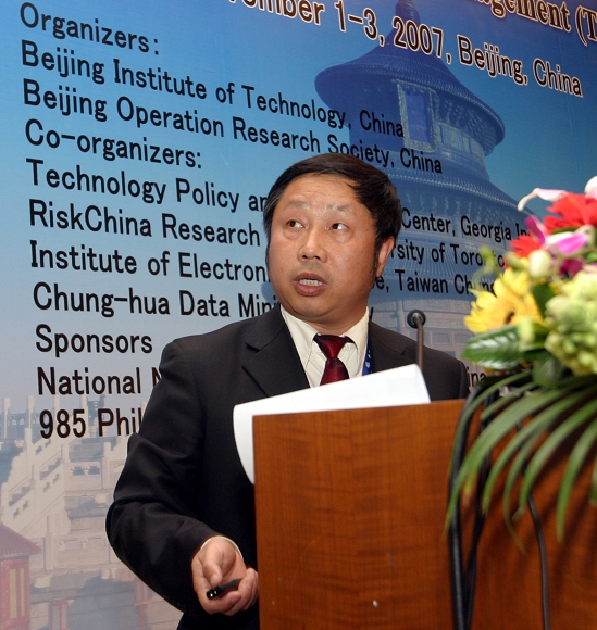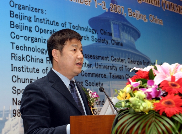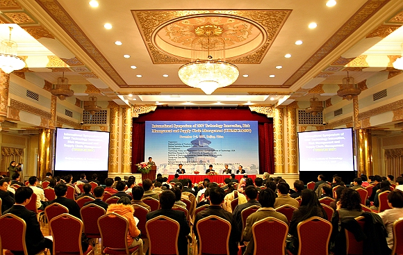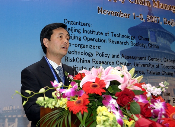 由金年会jinnianhuicom管理与经济学院和北京运筹学会主办,美国佐治亚理工学院技术政策与评价中心、加拿大多伦多大学风险管理研究中心、台湾中兴大学电子商务研究所和台湾中华资料采矿协会共同协办的“2007年技术创新、风险管理暨供应链管理国际研讨会”于2007年11月1日在北京友谊宾馆召开,来自美国、 加拿大、马来西亚、巴基斯坦、德国、台湾地区的近30名学者和来自国内的150多名学者参加了大会。参加开幕式的还有金年会jinnianhuicom副校长赵长禄教授、国家自然科学基金委管理科学与工程处刘作仪处长、金年会jinnianhuicom国际交流合作处王庆林处长、科技处陈鹏万副处长、管理与经济学院分党委书记李波、副院长朱东华、纪新华等。
